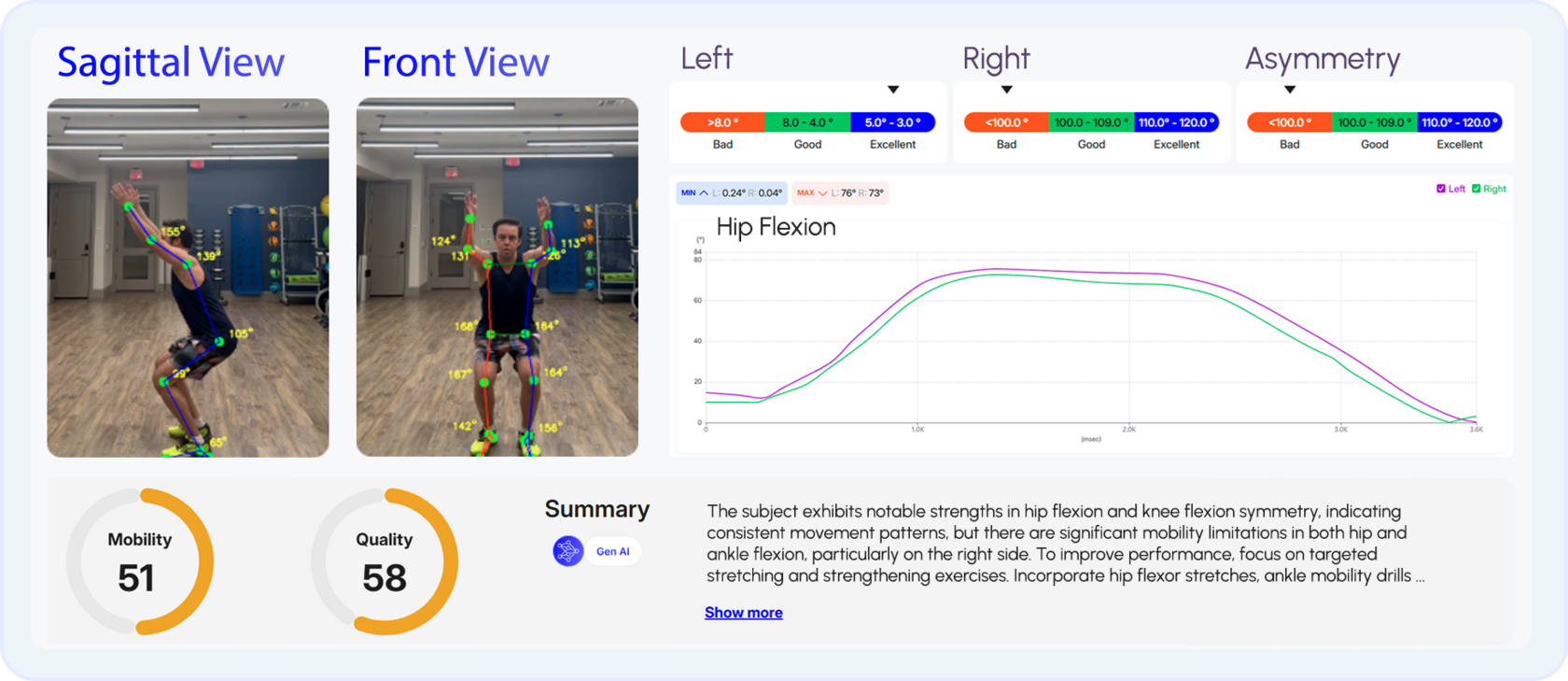 - Identify asymmetries (e.g., left hip vs. right hip flexion).
